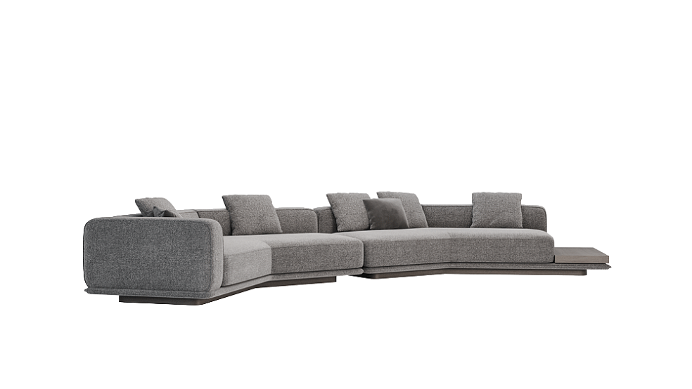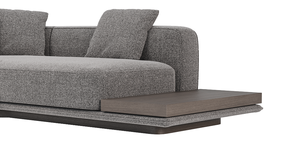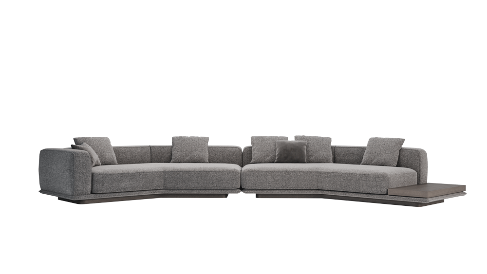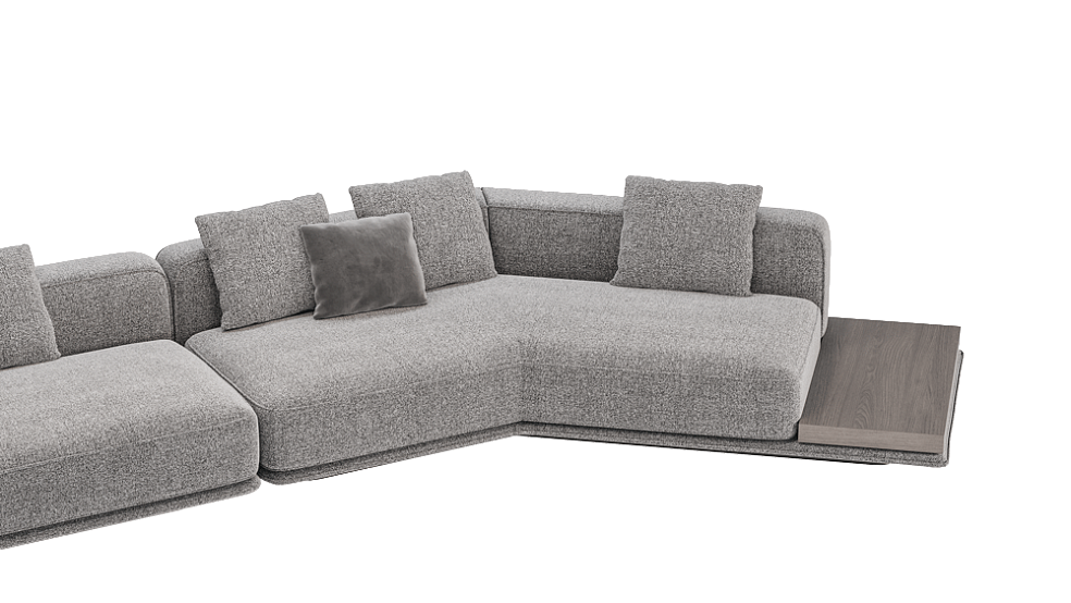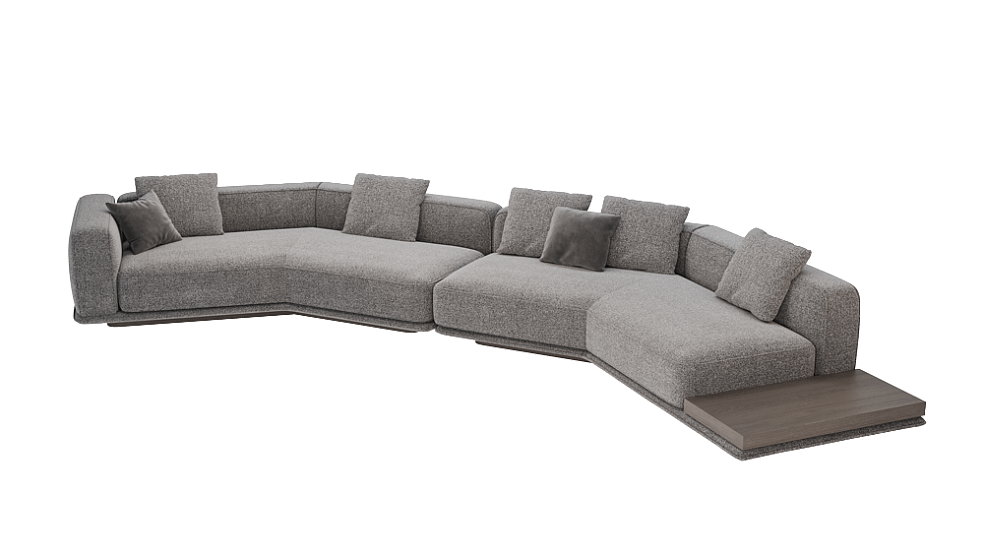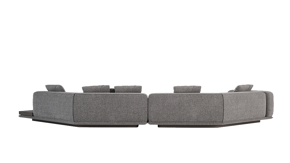«Ricci» — это модульный диван с продуманной геометрией и характерной композицией. Прямая, на первый взгляд, конструкция легко преобразуется в индивидуальные конфигурации: от компактных вариантов до сложных ансамблей с полкой, подлокотниками или столиками. Основание немного приподнято над полом, за счёт чего диван выглядит лёгким, почти невесомым, несмотря на массивные мягкие элементы. Эффект дополняют пропорциональные подушки с чётким силуэтом и декоративной отделкой.