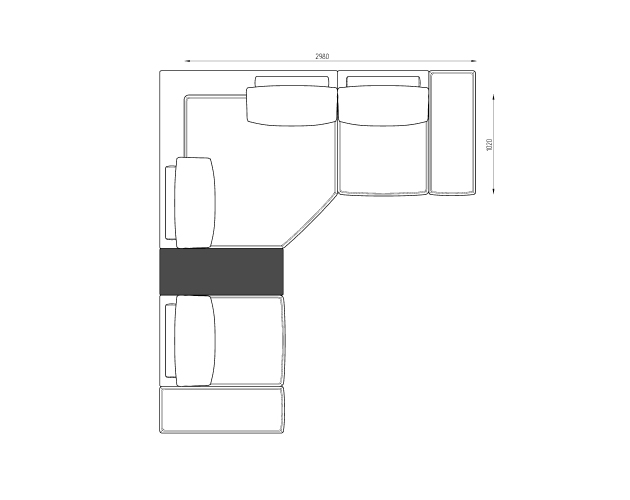 Декоративные элементы по всему периметру позволяют использовать диван для разделения зон, увеличивая возможности для интерьерных решений.