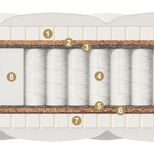 Слои кокосовой койры Supporto Naturale Plus повышают ортопедические качества матраса, придавая ему необходимую упругость и долговечность.