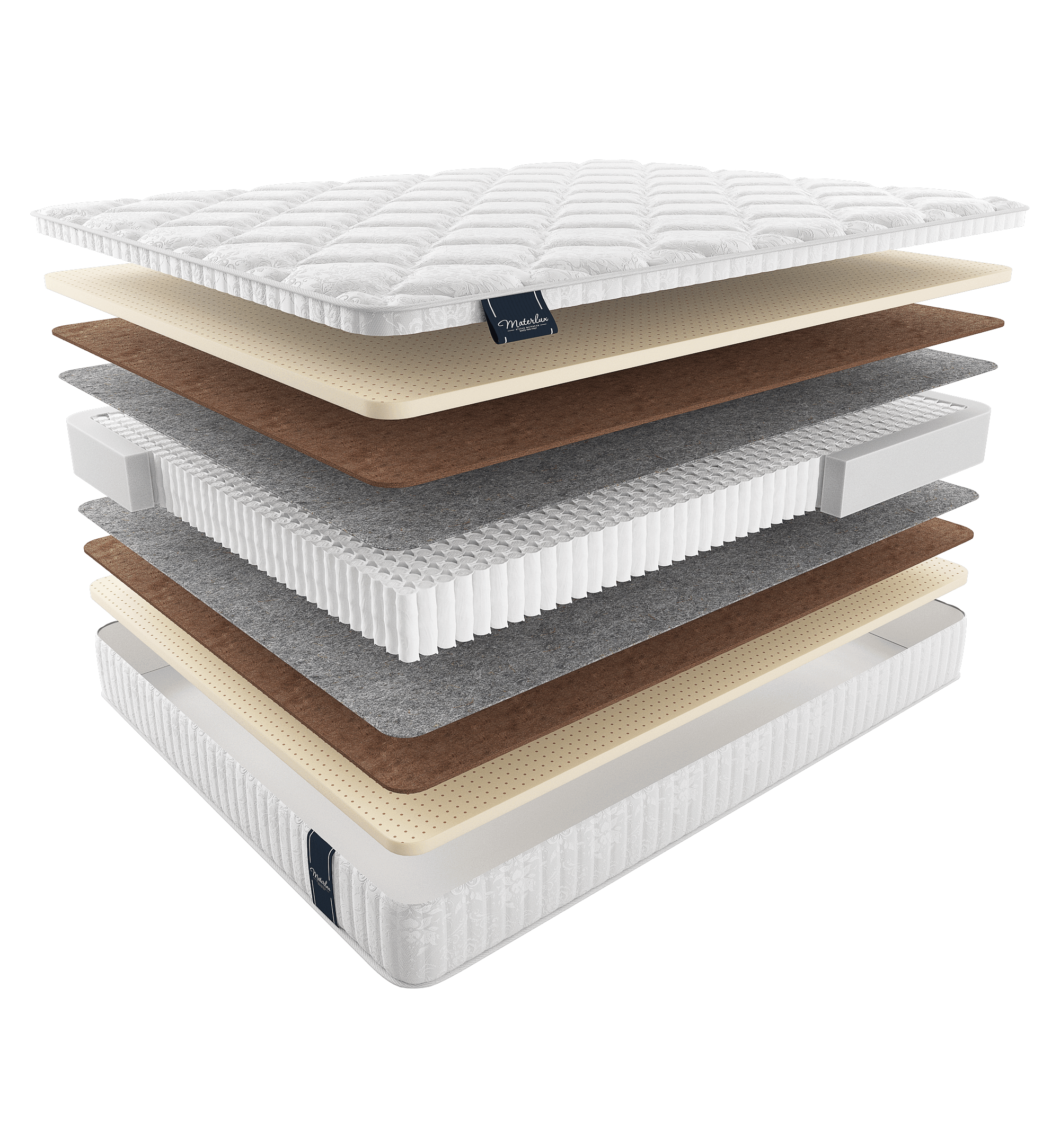 Матрас создан по европейским технологиям с использованием премиального бельгийского латекса и кокосовой койры — такое сочетание мягкости и упругости обеспечивает сбалансированную поддержку и способствует глубокому расслаблению. Пружинный блок Molla Super Protezione 1000 работает на точечное распределение нагрузки, сохраняя естественное положение позвоночника. А дышащая структура наполнителей помогает поддерживать гигиену и свежесть на протяжении многих лет.