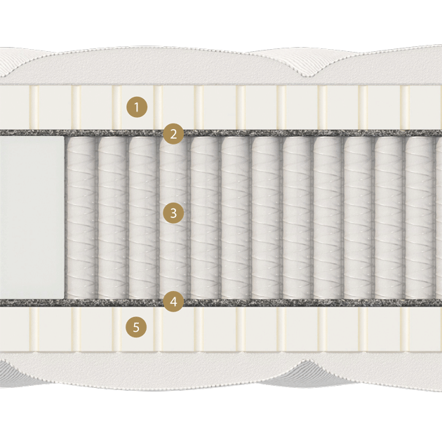 Слои термофиксированного фетра Feltro Termico защищают латекс от пружин и продлевают срок службы матраса. Даже при активной эксплуатации матрас долго сохраняет форму и свойства.